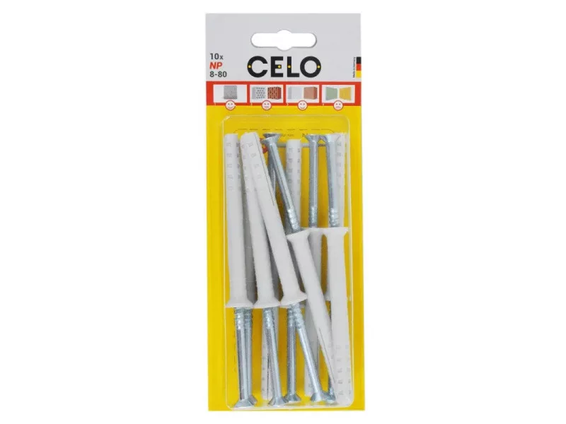 A CELO NP beütős nylon dübel ideális rögzítési eszköz keretekhez, lécekhez, csatornákhoz, szerelvényekhez, bilincsekhez stb. A dübel és csavar közti pontos illeszkedése optimális tágulást, ezzel együtt kiváló húzó terhelhetőséget eredményez. Az integrált beütőzár megakadályozza a dübel előterpesztését kalapáláskor. A PZ hornyú csavar fejrészén kialakított gyűrű védi a csavart beütéskor, így később gond nélkül ki, illetve vissza csavarozható.