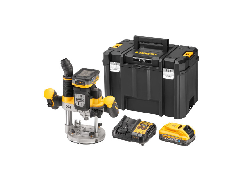 DEWALT Akkus felsőmaró 18 V 12 mm (2 x 5,0 Ah Power Stack akku + töltő + TSTAK)