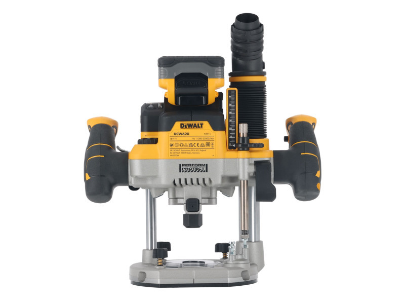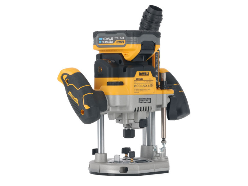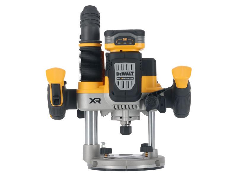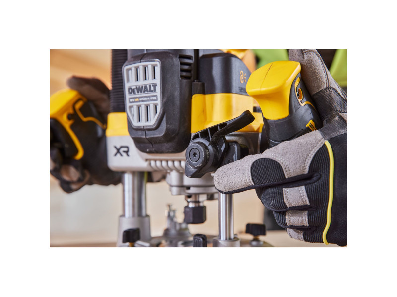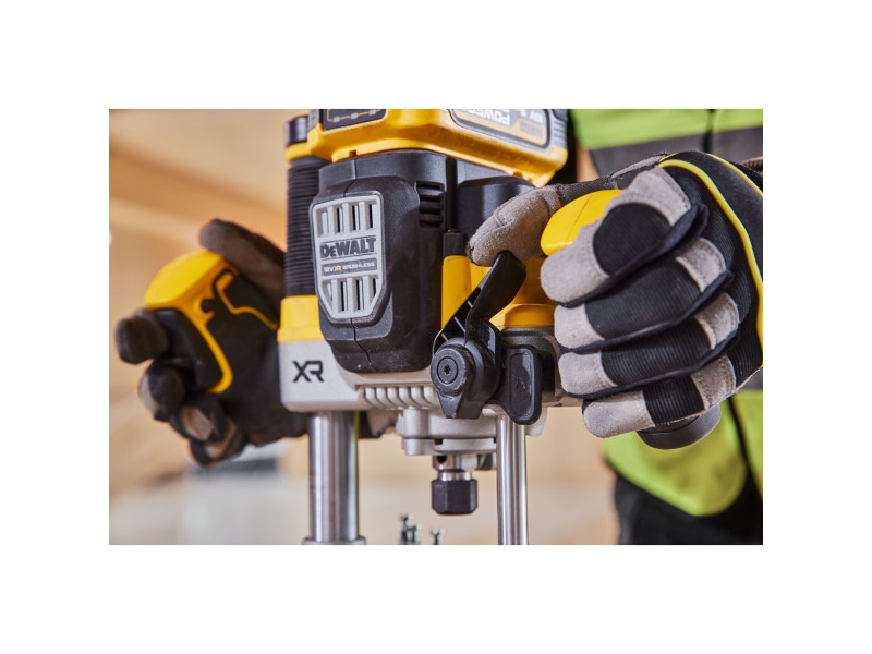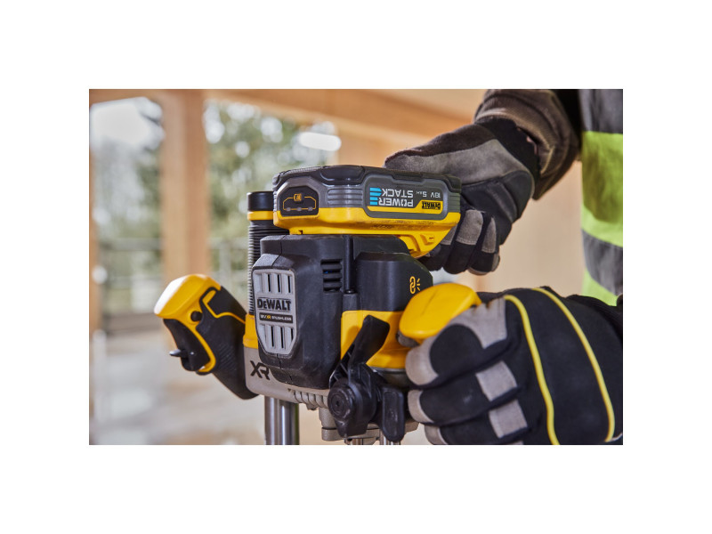 Első vezeték nélküli 1/2"-os felsőmarónk további alkalmazási lehetőségeket kínál a professzionális asztalosok számára a 18V XR rendszer segítségével. A hatékony DEWALT szénkefe nélküli motor és a Pack ID technológia révén a szerszám 18V XR POWERSTACK vagy XR FLEXVOLT akkumulátorral nagy teljesítményt nyújt. A 70 mm-es merülési mélység több feladat elvégzését teszi lehetővé, az ergonomikus indítókapcsoló, a merülésreteszelő és a változtatható sebesség pedig megbízható pontosságot és sokoldalúságot biztosít a helyszínen. Az integrált porelszívás, az AirLock-kompatibilitás és a beépített vezeték nélküli szerszámvezérlés lenyűgöző porkezelést kínál.