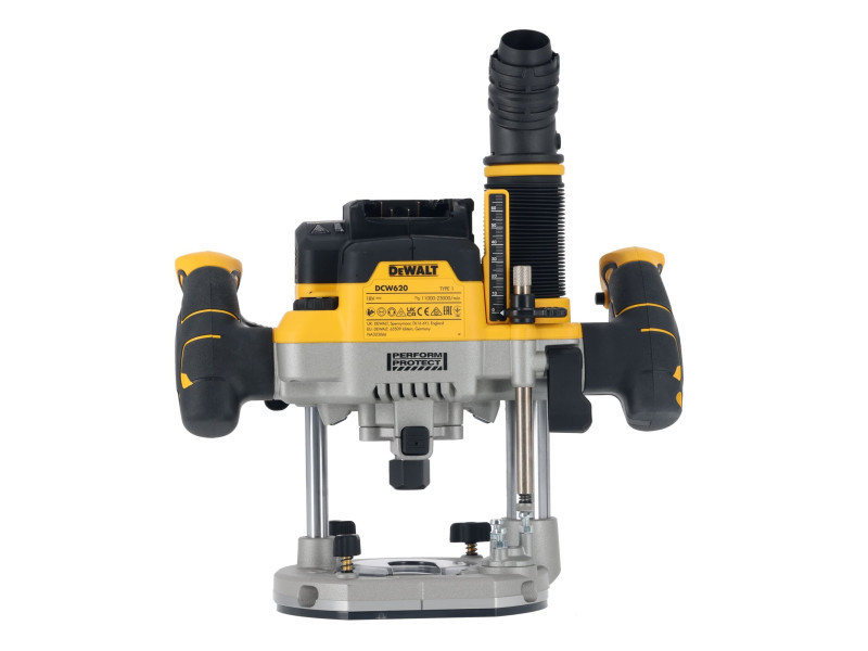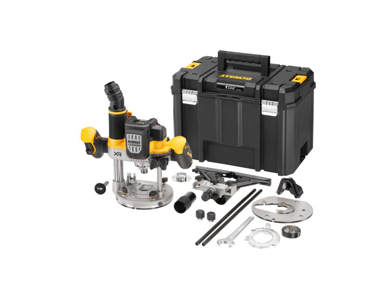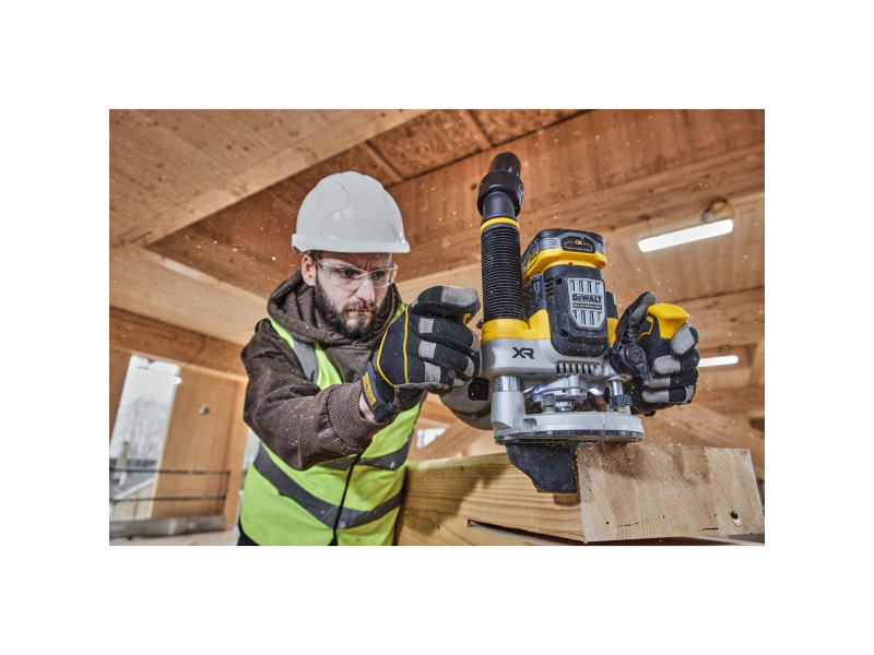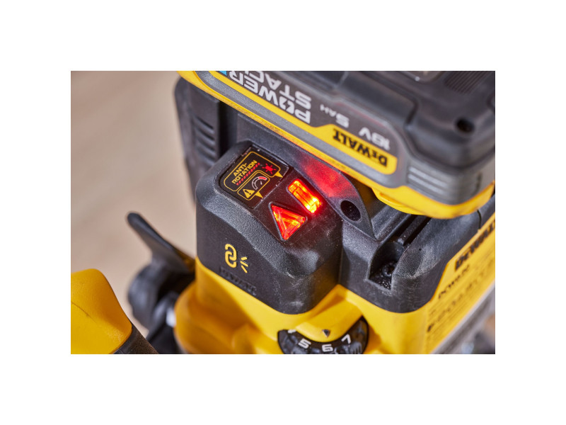 Első vezeték nélküli ½"-es felsőmarónk további alkalmazási lehetőségeket kínál a professzionális asztalosok számára a 18V XR rendszer segítségével. A hatékony DEWALT szénkefe nélküli motor és a Pack ID technológia révén a szerszám 18V XR POWERSTACK vagy XR FLEXVOLT akkumulátorral nagy teljesítményt nyújt. A 70 mm-es merülési mélység több alkalmazás elvégzését teszi lehetővé, az ergonomikus indítókapcsoló, a merülésreteszelő és a változtatható sebesség pedig megbízható pontosságot és sokoldalúságot biztosít a helyszínen. Az integrált porelszívás, az AirLock-kompatibilitás és a beépített vezeték nélküli szerszámvezérlés lenyűgöző porkezelést kínál.