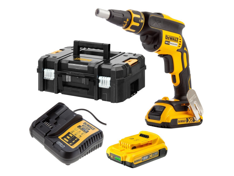 DEWALT Akkus gipszkarton csavarbehajtó 18 V szénkefe nélküli (2 x 2,0 Ah akku + töltő) DCF620D2