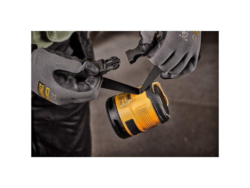 - A csattal ellátott zsinór biztosítja, hogy az egység könnyen szállítható és felakasztható a hátizsákra, övre vagy bármilyen munkahelyi szerkezetre