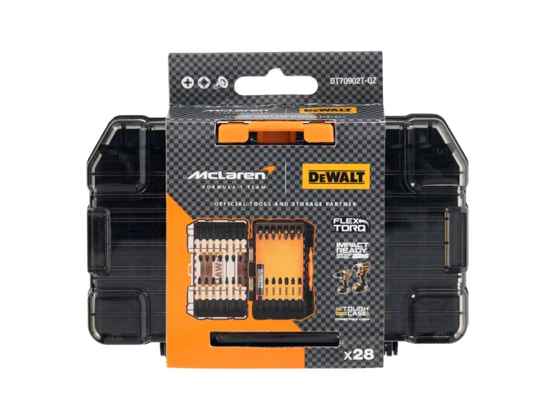 DEWALT/McLaren Bithegy készlet 28 részes Impact Ready bithegytartóval TOUGH CASE-ben