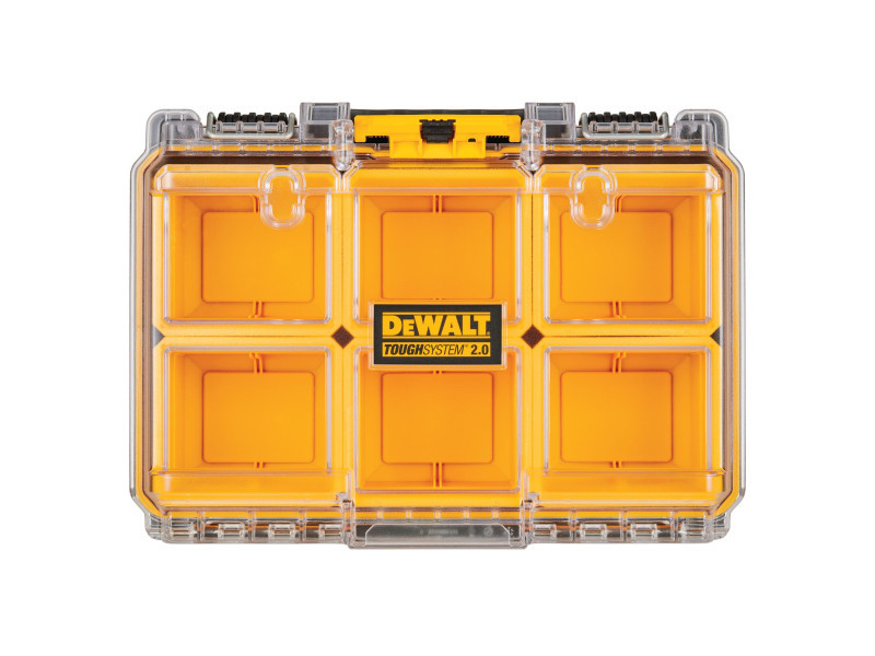 Optimális szervezés a ToughSystem 2.0 mély, kompakt rendszerzővel. 6 db kivehető, rendező rekesszel rendelkezik, a rendező rekeszeit a rétegelt lemez elválasztók behelyezésével személyre szabhatja, hogy a legjobban megfeleljen igényeinek. IP65-ös por- és vízállósággal védett, és az átlátszó fedélen keresztül látható a rendszerező tartalma. Kényelmesen hordozhatja a ToughSystem 2.0 mély, kompakt rendszerzőt a felső fogantyújánál fogva, vagy csatlakoztathatja bármely ToughSystem 2.0 termékhez a szabadalmaztatott, automatikusan csatlakoztatható oldalsó reteszekkel. A ToughSystem 2.0 mély, kompakt rendszerző bármely ToughSystem 2.0 termékkel kompatibilis.