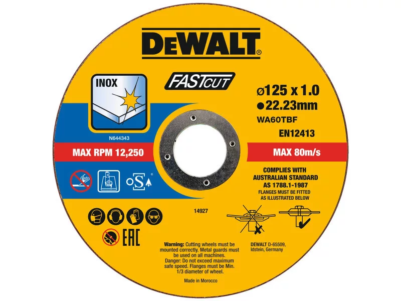 DEWALT Vágókorong fémre 125 x 1,0 x 22,2 mm inox WA60TBF vödrös kiszerelés (100 db)