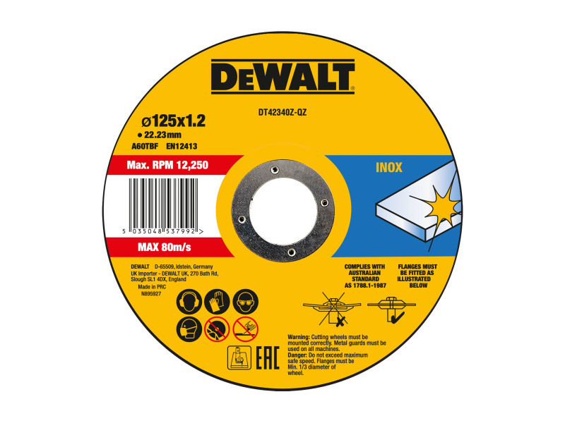 DEWALT Vágókorong fémre 125 x 1,2 x 22,2 mm inox A60TBF