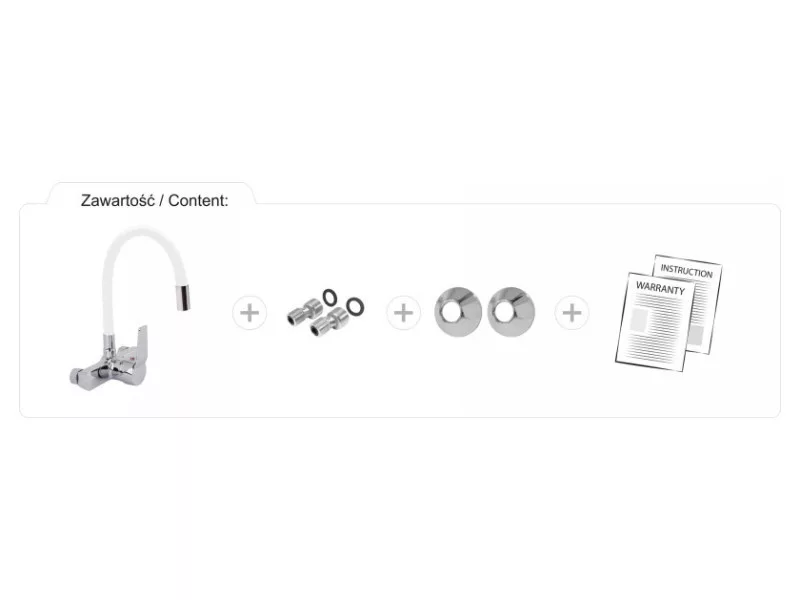 FALA Mosogató csaptelep fali fehér flexibilis csővel + tartozékok