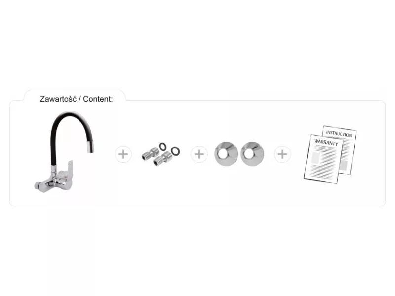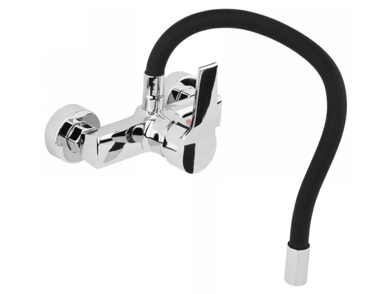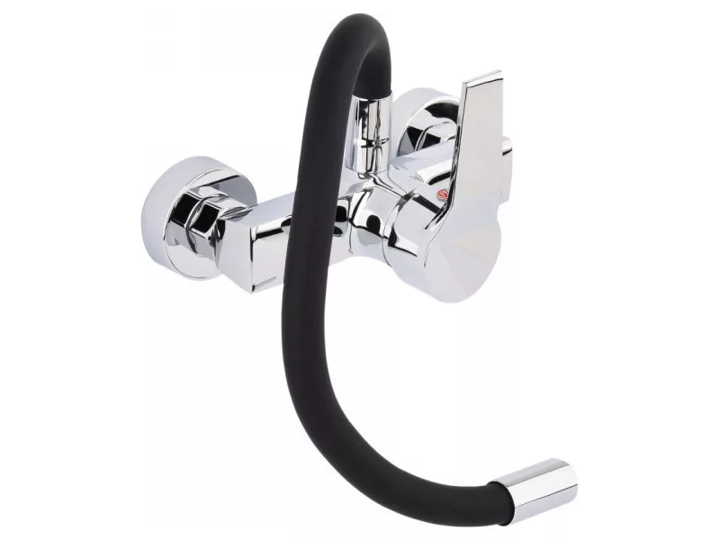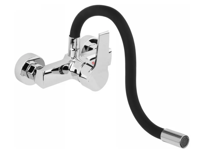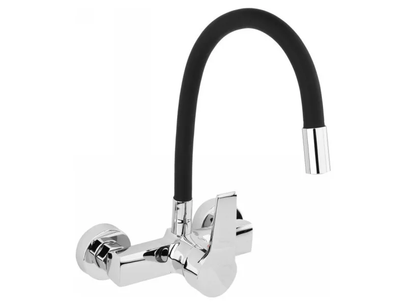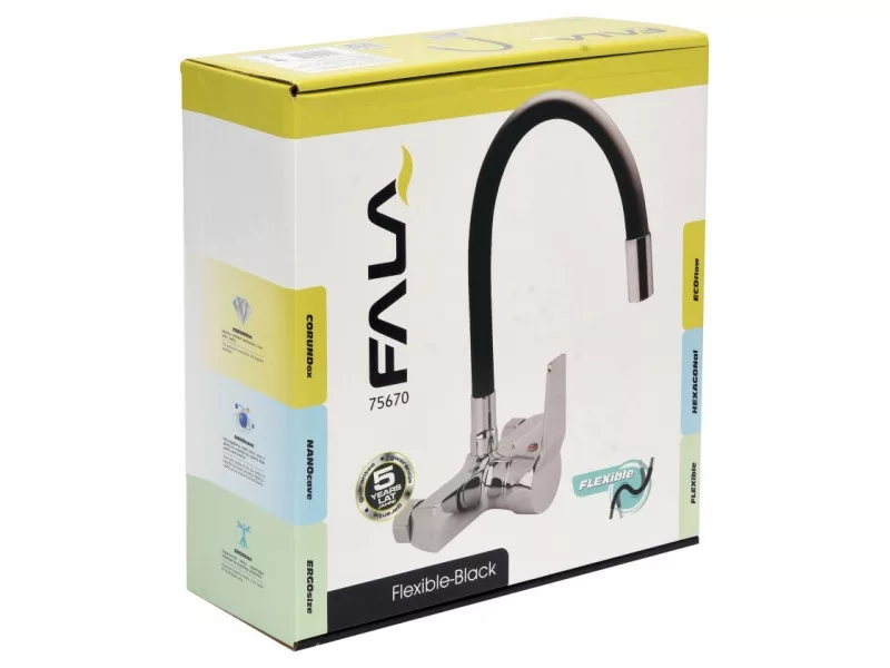 FALA Mosogató csaptelep fali fekete flexibilis csővel + tartozékok