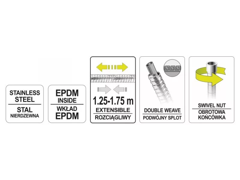 A rendelkezésre álló hosszúságok lehetővé teszik a tökéletes illeszkedést a csaptelephez, biztosítva a kényelmes használatot.