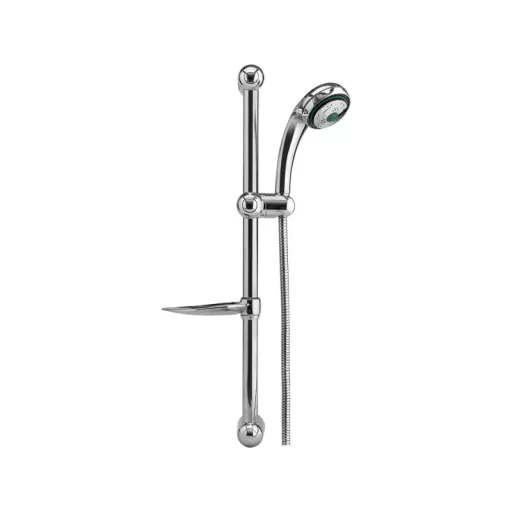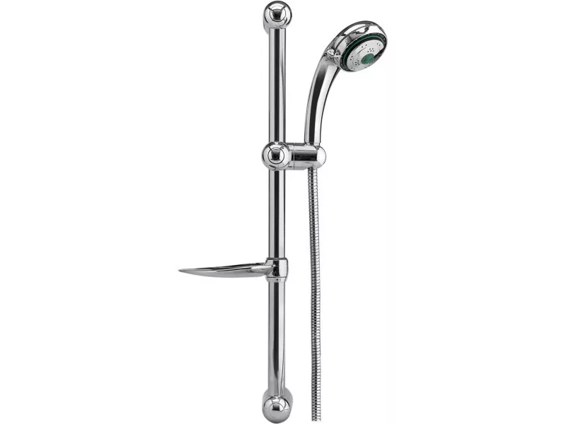 A 75558-as fürdőszobai szett tartós és robusztus zuhanykart, zuhanytömlőt, szappantartót és szappantartót tartalmaz. A zuhanykarton szabványos G1/2 " menettel rendelkezik, krómozott ABS műanyagból készült, 4 szórásvezérlő funkcióval. A gumicsatornák megakadályozzák a vízkő felhalmozódását. A zuhanytömlő rozsdamentes acélból készült, egyfonatú, 150 cm hosszú és szabványos G 1/2 " menettel rendelkezik. A szappantartó krómozott ABS műanyagból készült. A rúd rozsdamentes acélból készült, gyors magasságváltoztatás egy állítható fogantyúval - egy gombnyomással történő reteszeléssel . Minden felhasznált bevonat kemény és nedvességálló.