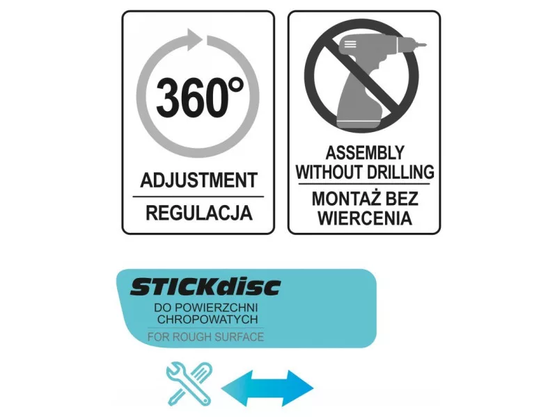 A durva felületekre (pl. matt csempékre) történő felszerelés a 3M speciális tárcsájának köszönhetően lehetséges, amely a fogantyúhoz tartozik.