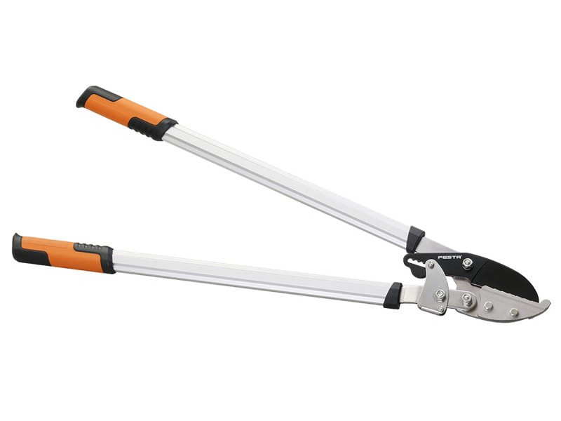 Ágvágó olló - racsnis, hossz 750 mm, racsnis - racsnis mechanizmus lehetővé teszi, hogy kevesebb erőt használjon a munkavégzés során, klasszikus ollók kemény és száraz ágakhoz 40 mm-ig, precízen köszörült kés tapadásmentes bevonattal, speciális forma - penge geometriája az optimális erőátvitel - kivételesen tiszta és sima vágás, a fix pofa fogazott része megakadályozza az ág elfordulását és elcsúszását vágás közben, a rugalmas műanyag ütköző védi a pengét, elliptikus formájú könnyű alumínium karok, ergonomikusan kialakított fogantyúk vágás közben csúszó anyagok garantálják a kényelmes és biztonságos munkát.