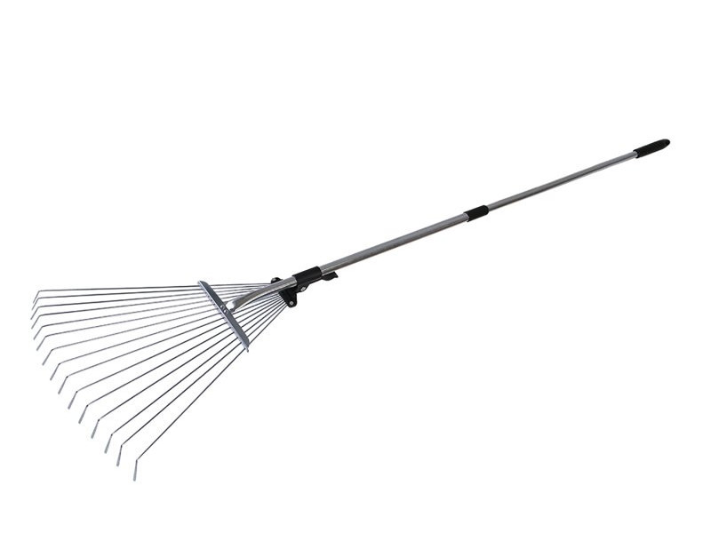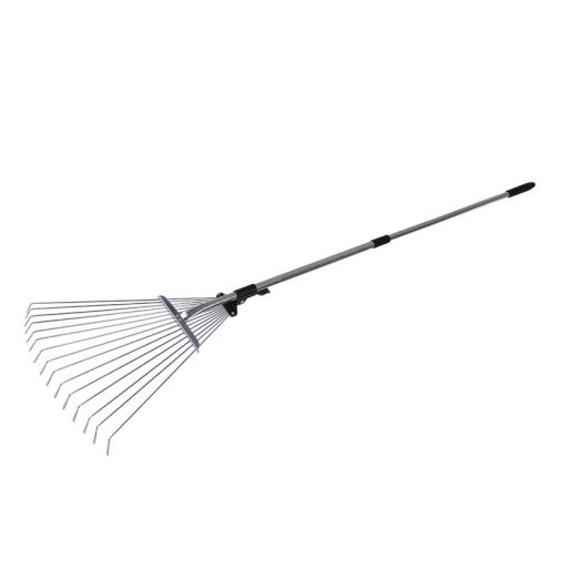 Svéd gereblye fém klipsszel - biztonsági berendezés, állítható pengetávolság, teleszkópos nyél, felhasználás: levelek, fű gereblyézésére.