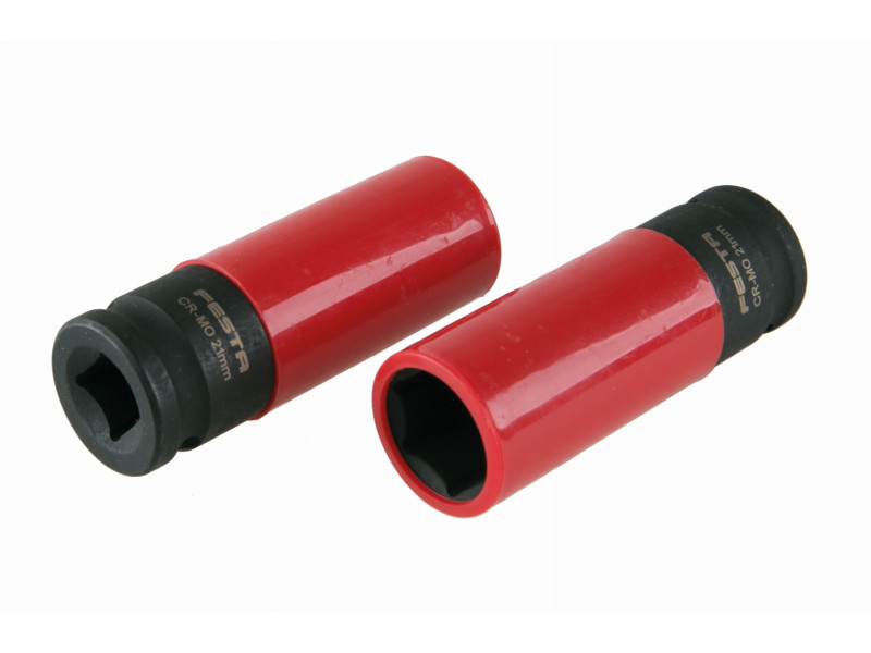 Kiváló minőségű FESTA könnyűfém kerékagy készlet, Cr-Mo acélból - kiváló anyag- és kivitelezési minőség ipari és professzionális használatra, 1/2"-os aljzat, pneumatikus szerszámokhoz alkalmas, műanyag védelem a tárcsa sérülései ellen. akasztó euro lyukkal.
