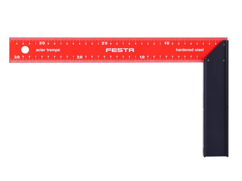 Asztalosszög, minőségi kidolgozás és anyagok (edzett rugóacél, tartókar feketére eloxált alumíniumból), skála mm-ben, pontosság 0,5mm/m.