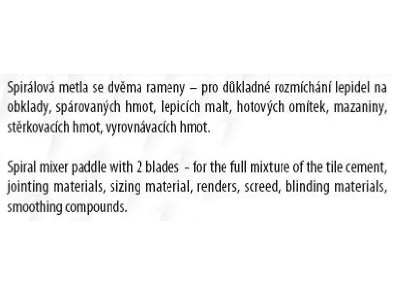 • használat: keverés csemperagasztók, fugázóanyagok, ragasztóhabarcsok, kész vakolatok, esztrichek, esztrichek, kiegyenlítő anyagok stb.