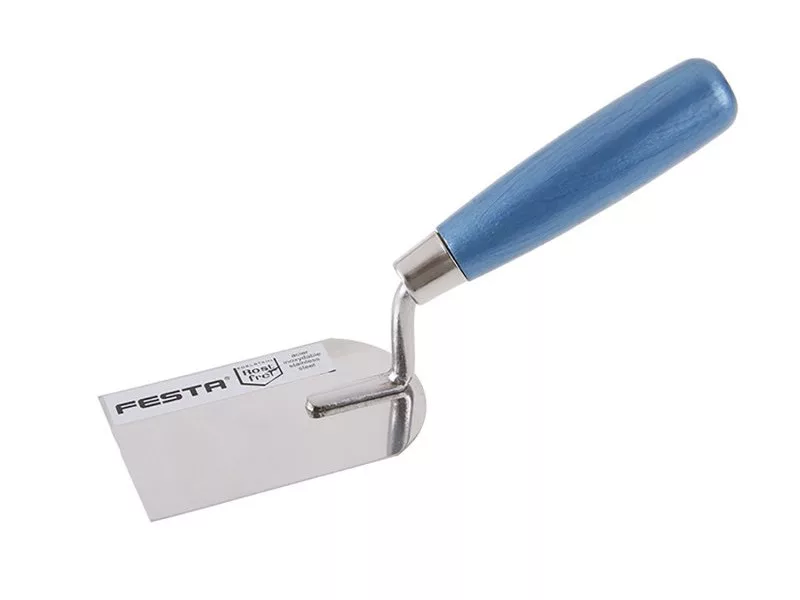 Radírozó kanál rozsdamentes acél FESTA 60 mm, fa nyéllel. Minőségi rozsdamentes acél. Az építőiparban befejező munkákhoz használják.