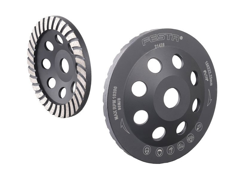 Csiszoló gyémánt tárcsa FESTA turbó, robusztus tartólemez tömör ötvözetből készült, speciális kialakítású gyémántszegmensek rögzítése a tárcsa hordozótárcsájához, magas gyémántpor tartalom a szegmensekben, felhasználás: márvány, gránit, tégla száraz csiszolásához , falazat, természetes és műkő, csempe , csempe..., lamellás kivitel finom csiszolásra alkalmas, méretek: a termék megnevezésében feltüntetve, csomagolás: papírdoboz eurolyukkal.