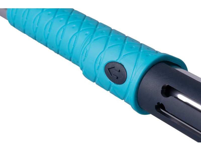 • A nyélbe integrált reteszelő mechanizmus - 90°-os elforgatással kiold a beállított hosszúságú zár, a kívánt nyélhossz beállítása után 90°-os visszaforgatással rögzíthető a beállított hosszúság