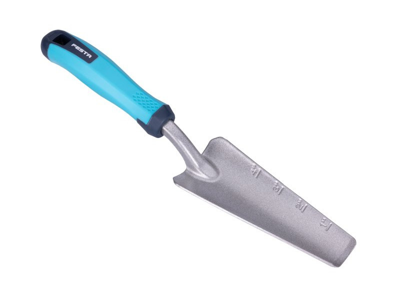 • kerti lapát - keskeny kialakítás, tartós és könnyű alumíniumötvözetből, ergonomikus gumírozott nyéllel