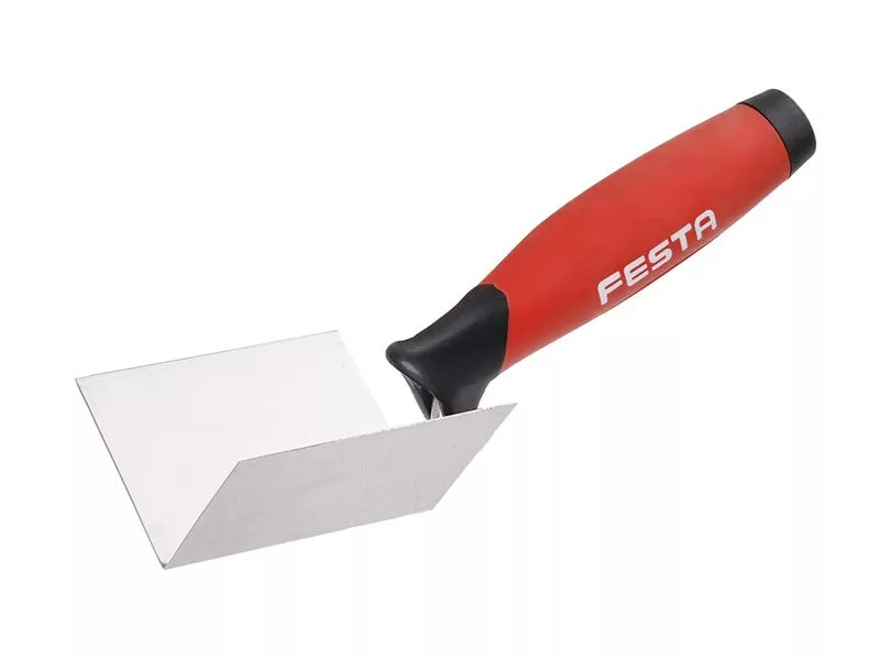 Saroksimító rozsdamentes kanál FESTA 80 x 60 x 60 mm gumi nyéllel. A sarokkanál kiváló minőségű rozsdamentes acélból készült, vastagsága 1,0 mm, nyele gumi, ergonomikus kialakítású. A radír a külső és a belső sarkok beállítására és tisztítására szolgál.