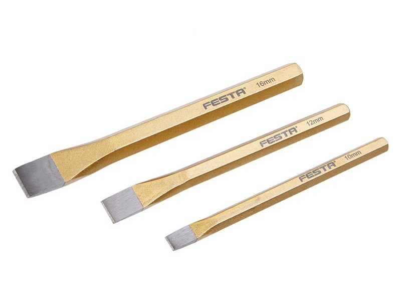 FESTA vésőkészlet króm-vanádium acélból. A készlet 3 db vésőt tartalmaz: 12x152, 10x142, 16x172.