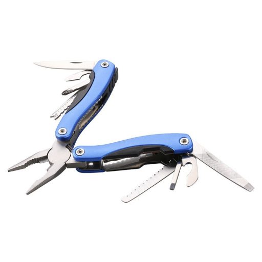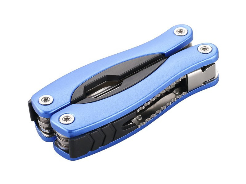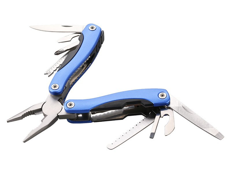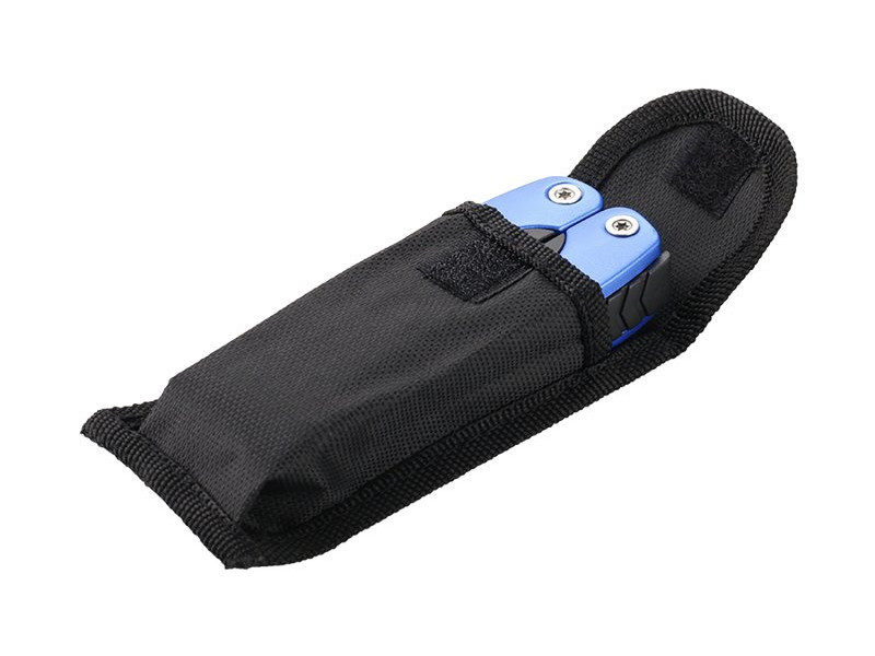 • fogó, kés - penge 55 mm, fűrész - penge 55 mm, reszelő, csavarhúzók PH1 és lapos 4 és 2 mm, konzervnyitó, sörnyitó, horgász szerszám 5cm /2-es mérleggel"nylon tasak övhurokkal