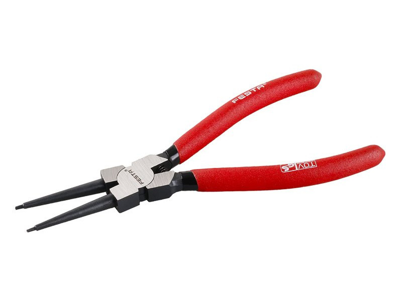 Fogó a belső biztonsági gyűrűkhöz - helyezze be a gyűrűket a lyukakba, és nyomja össze a belső gyűrűt a fogóval. Ez csökkenti az átmérőjét, és lehetővé teszi a gyűrű kényelmes felszerelését vagy eltávolítását