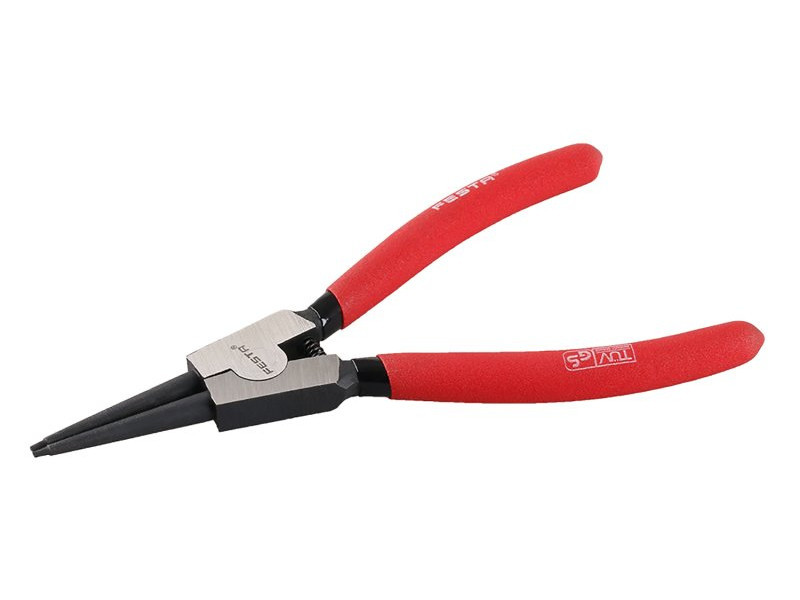 Fogó külső biztosítógyűrűkhöz - külső gyűrűket használunk a tengelyeken és a tengelyeken. Az ilyen fogók megnyomásával megnő a gyűrű átmérője, majd ezt a gyűrűt fel lehet venni vagy le lehet venni