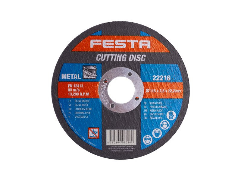 Szemcsetípus: Korund Kötőanyag: Aldehid alapú műgyanta Kivitel: egyenes Max. Működési sebesség: 80m/s Max. megengedett fordulatszám: 13300 1/min Kétrétegű üvegszálas betéttel megerősítve a szilárdság növelése érdekében. Fémen, öntöttvason használható.