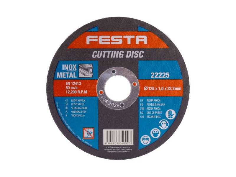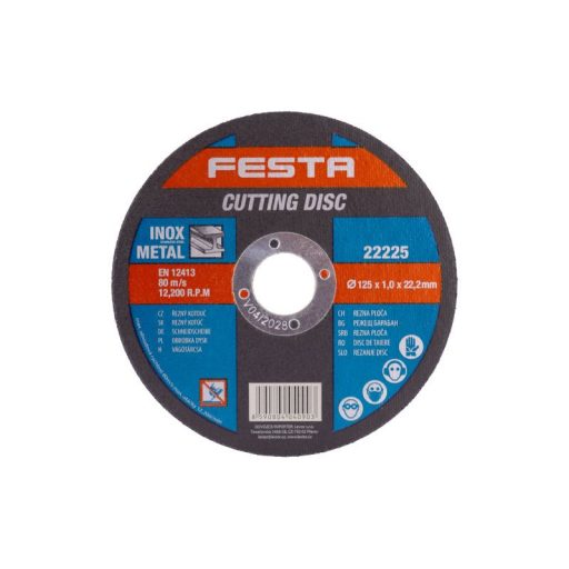 Szemcsetípus: Korund Kötőanyag: Aldehid alapú műgyanta Kivitel: egyenes Max. Működési sebesség: 80m/s Max. megengedett fordulatszám: 12200 1/min Kétrétegű üvegszálas betéttel megerősítve a szilárdság növelése érdekében. Fémen, öntöttvason, rozsdamentes acélon használható.