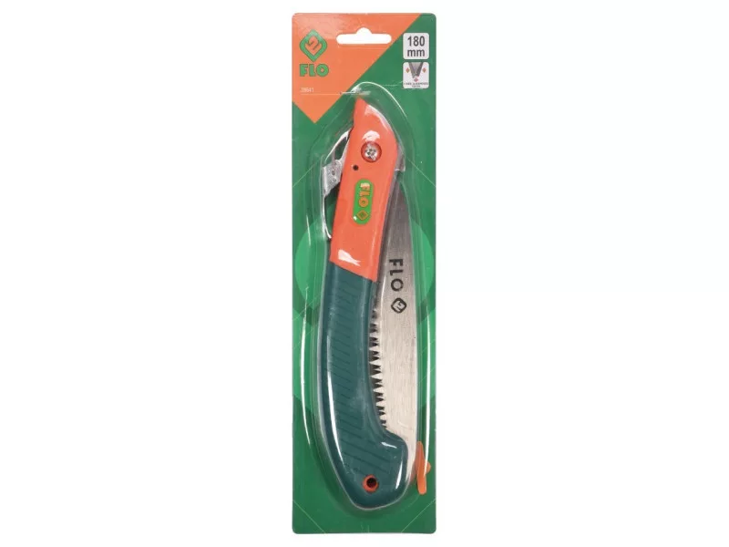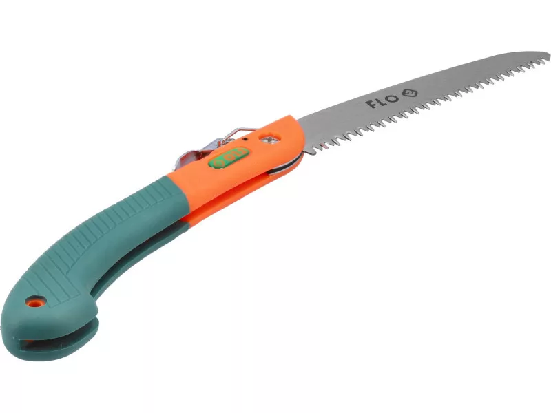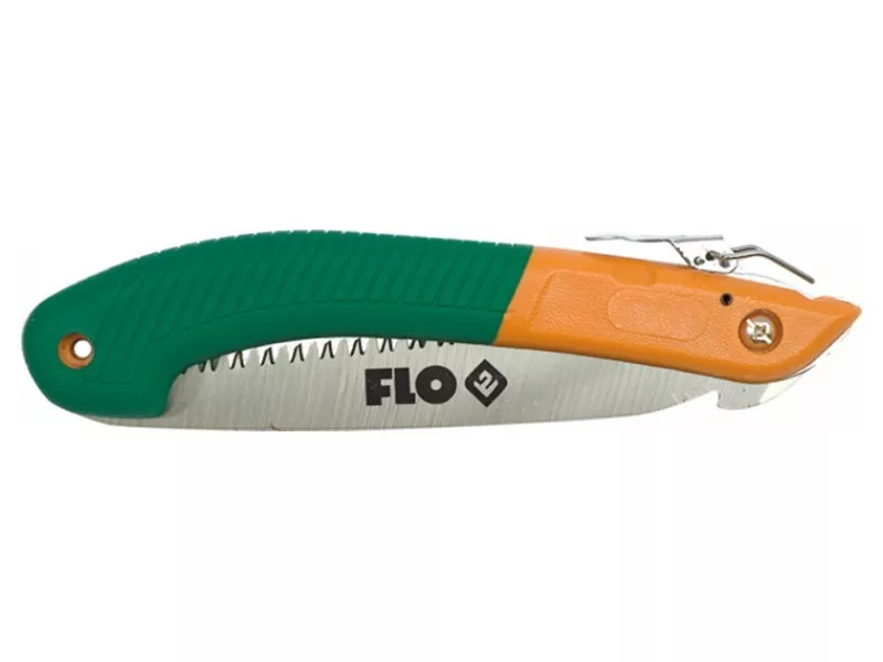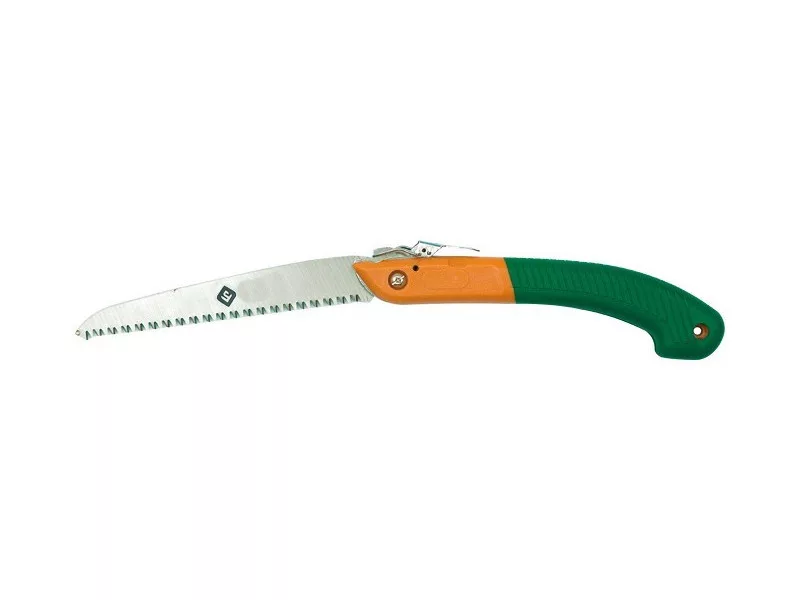 Összecsukható kerti metszőfűrész. Rugós, hajlított penge speciálisan kialakított fogazással az ágak vágásához, visszahúzható a műanyag hosszú nyélbe. Lyuk a nyélben a könnyű tárolás érdekében. A kertész munkájához nélkülözhetetlen, a fűrész pengezárral rendelkezik.