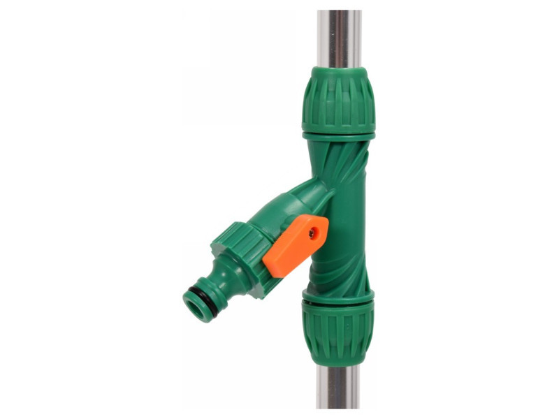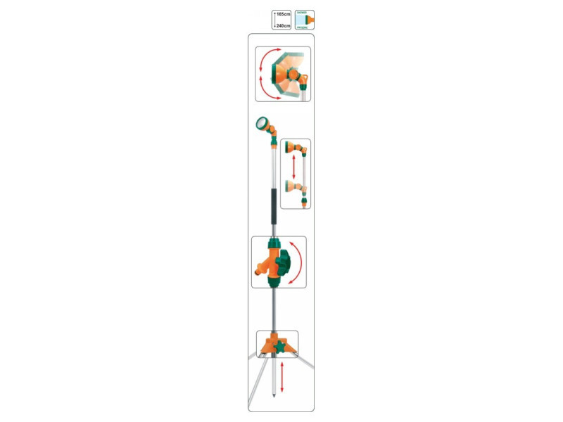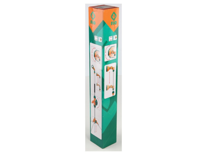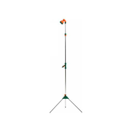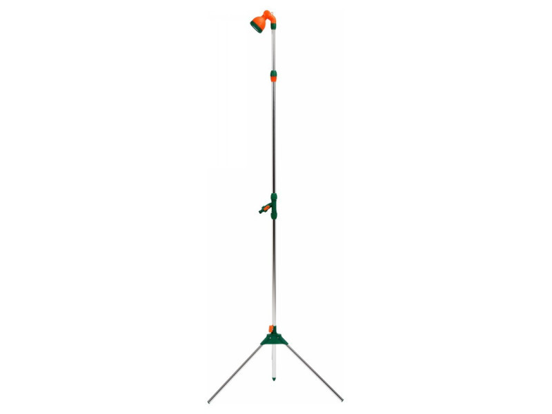 Könnyen telepíthető és egyszerűen használható FLO márkájú kerti zuhany, 1,65-2,40 m magasságban állítható.