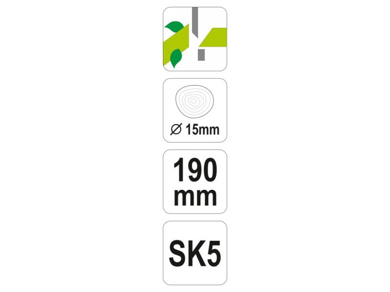 Legfeljebb 15 mm átmérőjű növények vágására alkalmas.