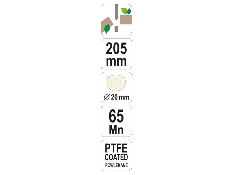 A penge 65 Mn acélból készült, teflonbevonatú. A szerszám hossza 205 mm.