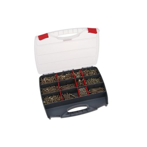 Alapvető facsavarok készlete műanyag rendszerezőben. Alkalmas minden otthoni műhelyhez. A készlet 12 féle csavart tartalmaz, összesen 2000 db. 350 db - 3.0x16mm, 280 db - 3.0x20mm, 220 db - 3.0x25mm, 250 db - 3.5x20mm, 240 db - 3.5x25mm, 180 db - 3.5x30mm, -6 mm., -480x 30mm, 40 db - 4.0x40mm, 30 db - 4.0x50mm, 25 db - 5.0x50mm, 25 db - 5.0x60mm.
