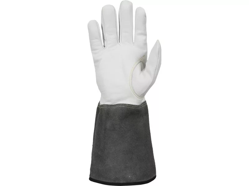 Hegesztőkesztyű tartós és puha fedett kecskebőrből a tenyérrészen és a kézfejrészen. TIG hegesztéshez alkalmas.