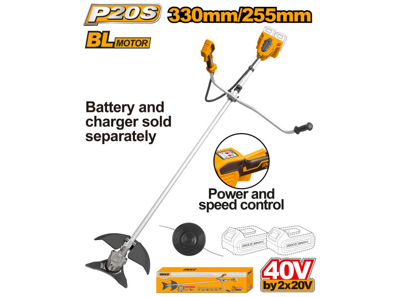INGCO Akkus fűkasza 330 mm szénkefe nélküli 2 x 20 V (akku és töltő nélkül)