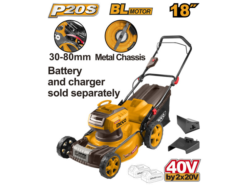 INGCO Akkus fűnyíró 460 mm 2 x 20 V szénkefe nélküli (akku és töltő nélkül)