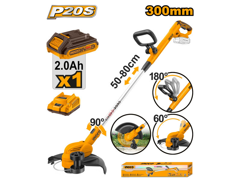 INGCO Akkus fűszegélynyíró 300 mm 20 V (1 x 2,0 Ah akku + töltő)