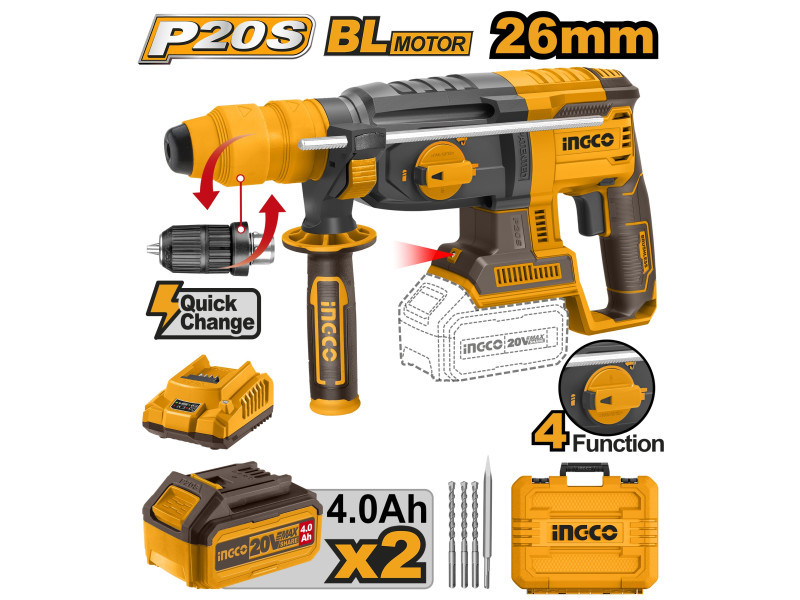 Erős, kefefej nélküli motor szállít 0-1100rpm, 0-5000bpm és 2,5J ütőenergiát a legigényesebb alkalmazások kezelésére. Az SDS plus szerszámtartók akár 26mm-es bitet is képesek tartani, és a legjobb választás könnyű kalapácsfúráshoz és véséshez. A nyomatékhatároló kuplung megakadályozza a fogaskerék károsodását, automatikusan kikapcsolja a fogaskerekeket, ha a bit beragad. A változó sebességű ravasz lehetővé teszi a felhasználó számára, hogy a sebességet az alkalmazáshoz igazítsa a nagyobb sokoldalúság érdekében. 4 módos működés a "csak forgás", "kalapácsolás forgással", "csak kalapácsolás" vagy "véső zár" számára. Az LED fény megvilágítja a munkaterületet. Ergonomikus, puha gumi markolat kialakítás a kényelmes működés érdekében.