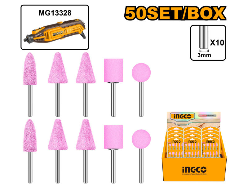 Szállítási terjedelem: 2 db golyó típusú fej (10 × 18 mm), 4 db kúp alakú fej (13 × 21 mm), 2 db T-alakú fej (12 × 13 mm), 2 db kör alakú fej (12 × 12 mm), Bliszterben és kartondobozban