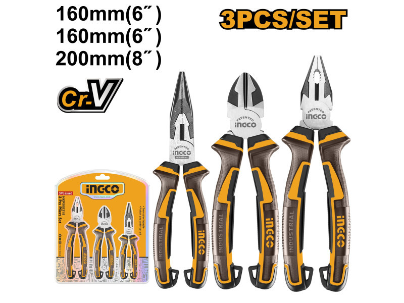Szállítási terjedelem: 1 db kombinált fogó, 1 db hosszúcsőrű fogó, 1 db oldalcsípő fogó, bliszterben