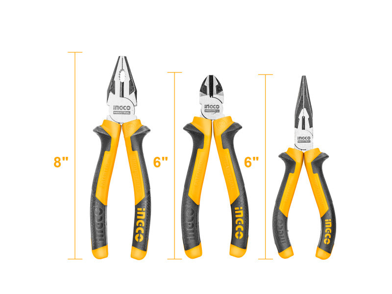 Méretek: kombinált fogó: 200 mm (8"), hosszúcsőrű fogó: 160 mm (6"), oldalcsípő fogó: 160 mm (6")