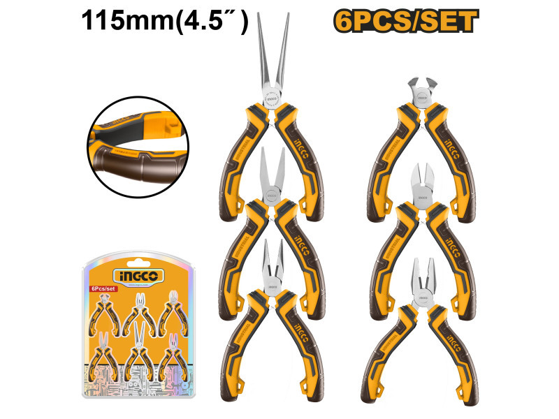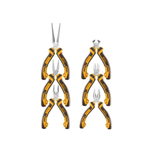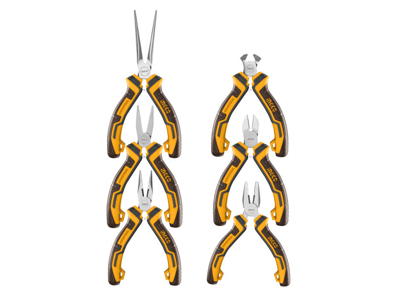 Szállítási terjedelem: 1 db kombinált fogó, 1 db oldalcsípő fogó, 1 db homlok csípő fogó, 1 db hosszúcsőrű fogó, 1 db laposcsőrű fogó, 1 db kerekcsőrű fogó, Bliszterben