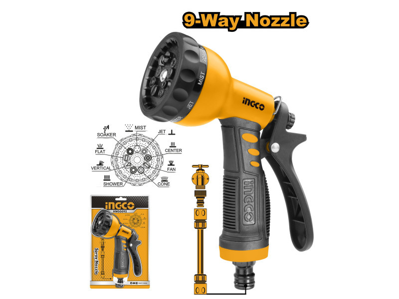 1. 9 féle víztípus beállítható vízsugár pisztoly