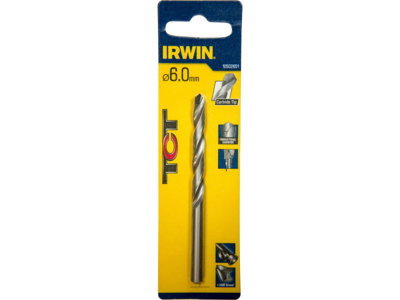 Az Irwin Metric TCT (volfrámkarbid hegyű) fúrószárak precíziós fúrást tesznek lehetővé helyhez kötött gépekkel edzett acélból, öntöttvasból, bronzötvözetekből és mangánötvözött acélból.