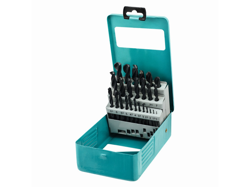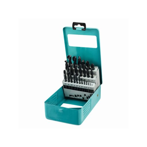 25 db HSS fúró 1 mm-től 13 mm-ig terjedő méretben, 0,5 mm-es osztással.