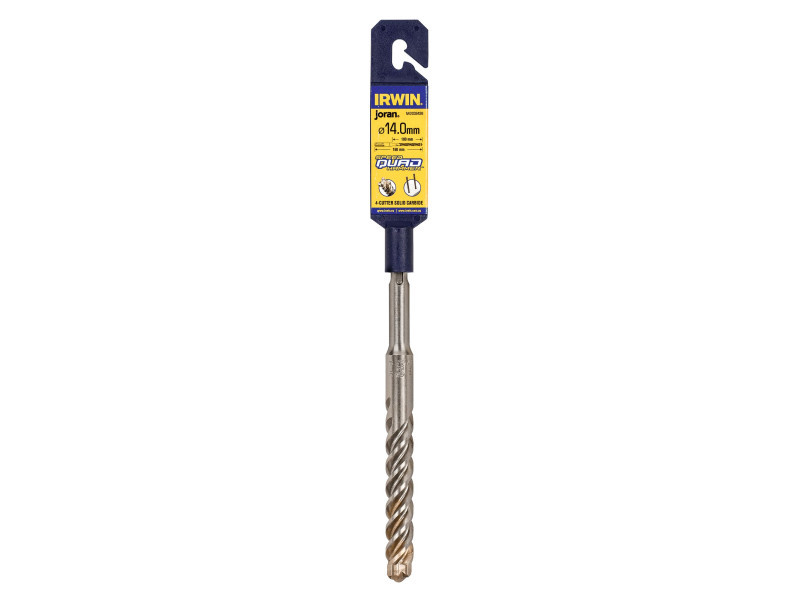 Az IRWIN® Speedhammer Quad Drill Bit ideális lyukak fúrására, dübelek rögzítésére falazatban, minden típusú kőben és betonban. 4 élű geometriája koncentrikusabb lyukat fúr a legjobb rögzítés érdekében.