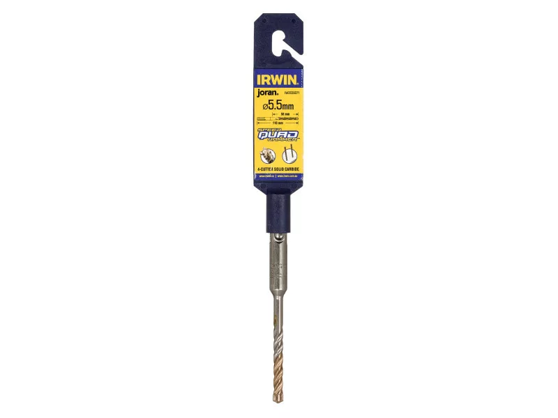 Az IRWIN® Speedhammer Quad Drill Bit ideális lyukak fúrására, dübelek rögzítésére falazatban, minden típusú kőben és betonban. 4 élű geometriája koncentrikusabb lyukat fúr a legjobb rögzítés érdekében.
